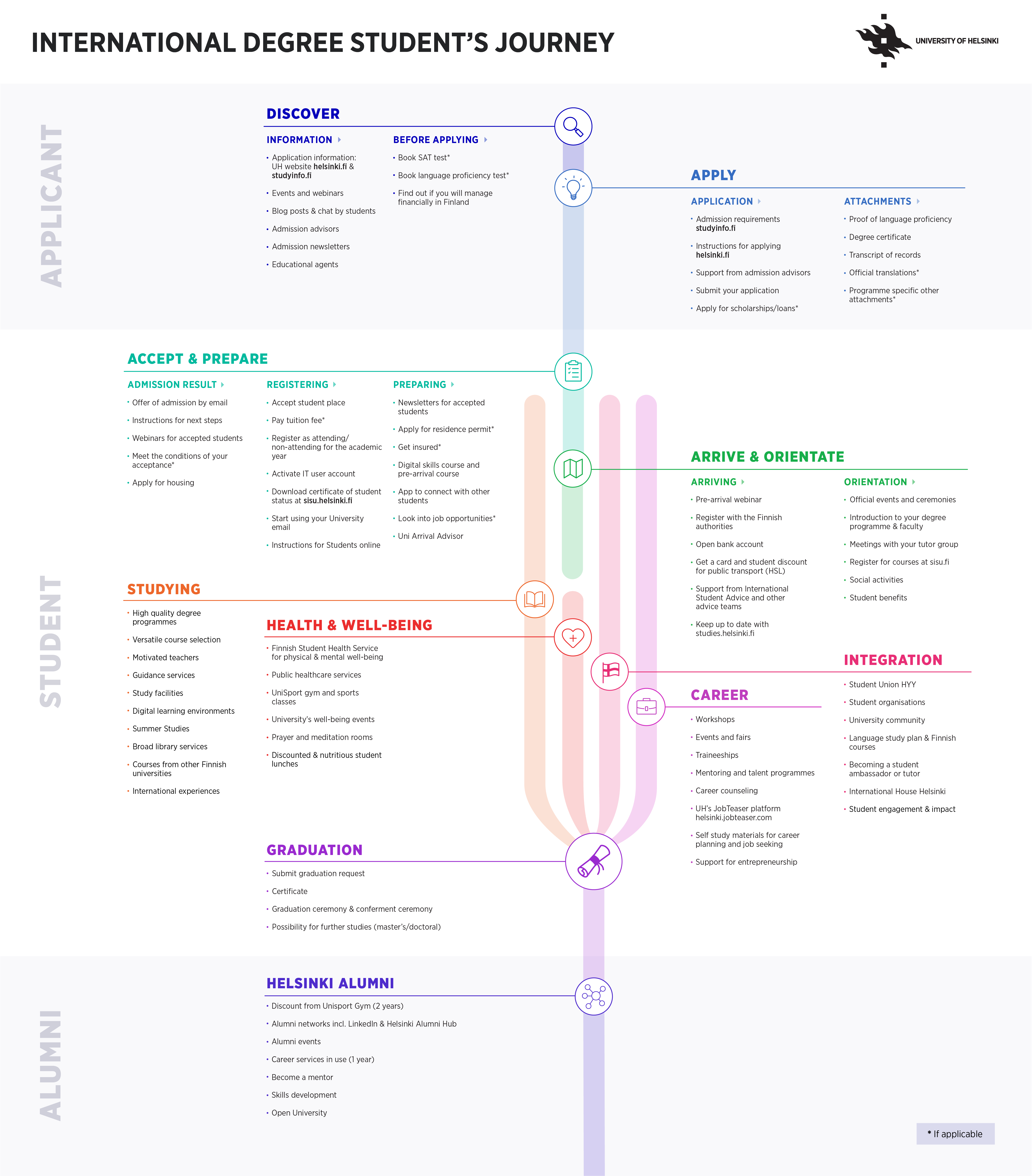 You will also receive links to a digital skills course and a pre-arrival course—both of which will help you understand the UH environment better. In addition to this, you will also receive an invitation to an exclusive app designed to help you network with other UH students and get to know your classmates! If you are keen on working alongside your studies, we also warmly invite you to explore job opportunities in Finland already at this point.